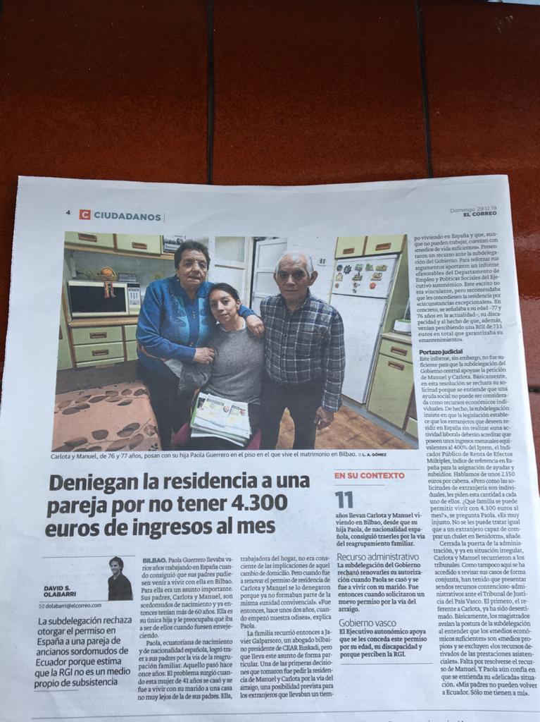 - La Subdelegación del Gobierno en Bizkaia dictó las dos resoluciones por separado, pese a tramitarse simultánea y conjuntamente y tratarse de un matrimonio. Los juzgados respectivos se negaron a acumular las dos resoluciones en un solo procedimiento obligando a la interposición de dos recursos contenciosos que correspondieron a dos juzgados distintos. En definitiva, fue necesario interponer otros dos recursos de apelación separados que correspondieron a dos secciones de la sala de lo contencioso del TSJ del País Vasco, duplicando la exigencia del importe del IPREM exigido hasta el 800%, es decir 4.302,72€ al mes.